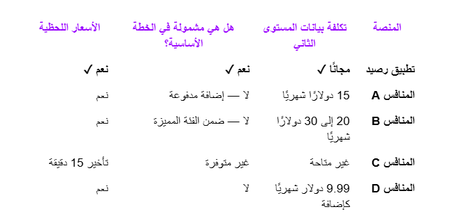 مقارنة تكلفة بيانات المستوى الثاني عبر منصات دول مجلس التعاون الخليجي